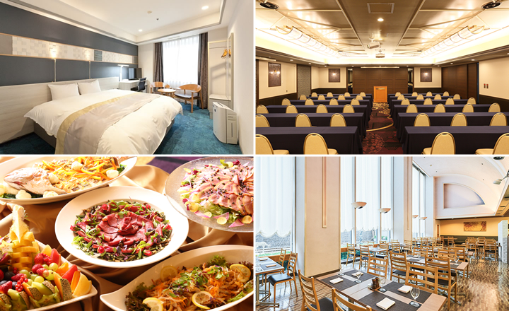 シングル、ダブル、ツイン・和室を合わせて214部屋。小会議室からコンベンションホールまであり。