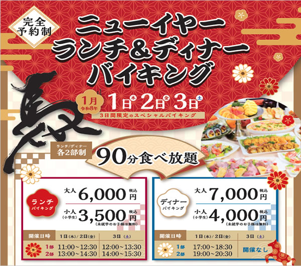【完全予約制】ニューイヤー ランチ&ディナー バイキング開催のお知らせ