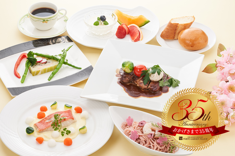 皆様にご愛玩いただき、東京ガーデンパレスは開業より35周年を迎えました。これを記念し、ワンドリンク付のお得な記念ディナーコースをご用意いたしました。是非ご賞味くださいませ。