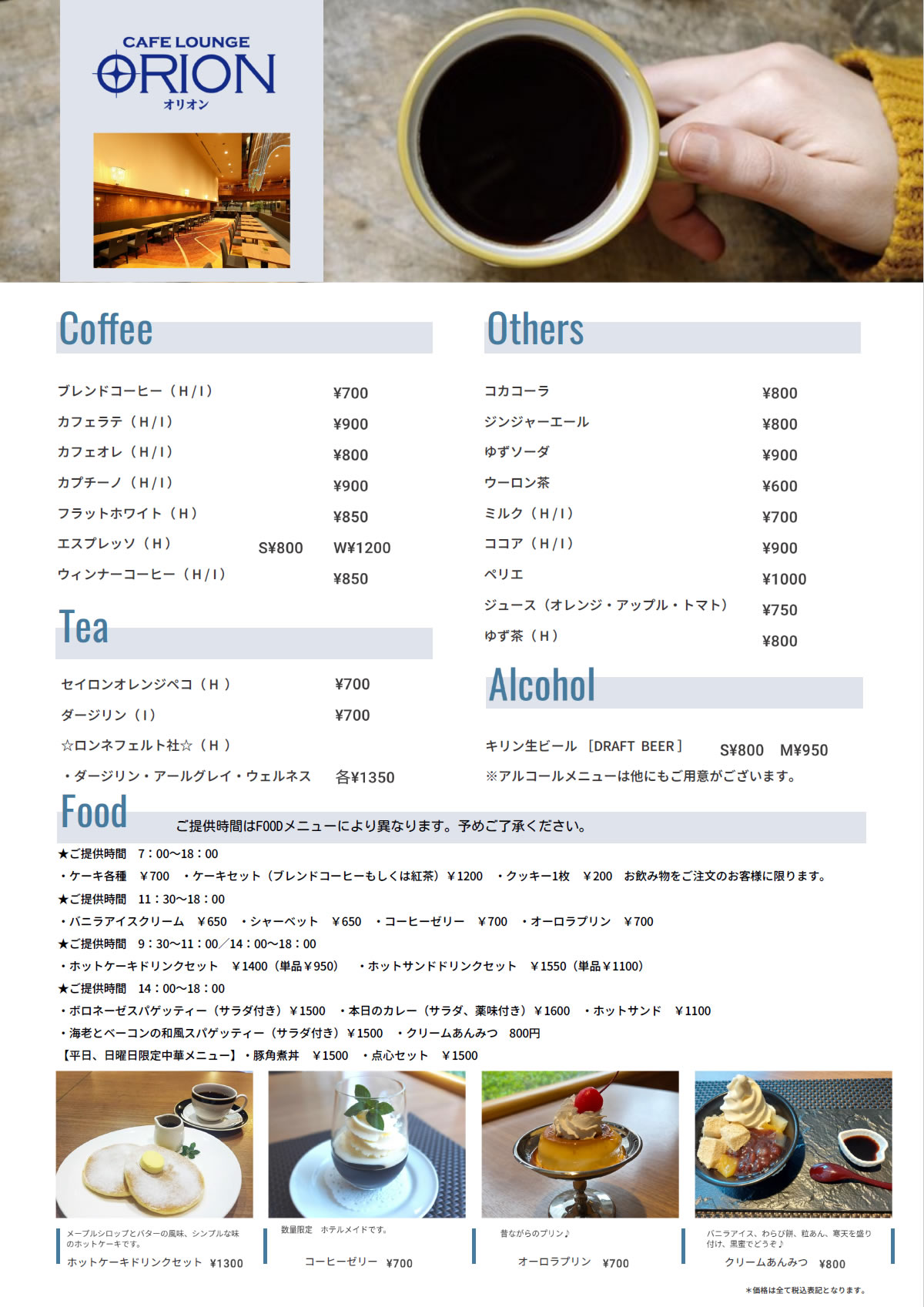 【喫茶限定メニュー 全日14:00~18:30(ラストオーダー18:00)】