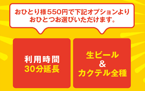 おひとり様550円で下記オプションよりおひとつ追加いただけます