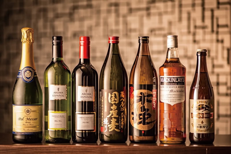 日本酒/焼酎(麦)/焼酎(芋)/ワイン(赤)/ワイン(白)が飲み放題となります。