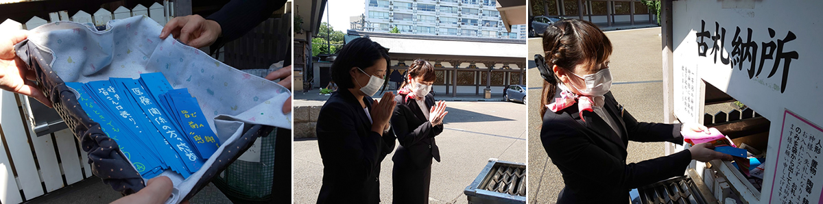 そして、新型コロナウイルスの影響で大変な思いをされておられる医療関係者の皆さまへの感謝の想いと、この大変な状況がはやく良くなってほしいと願う「感謝の木・終息の木」の短冊もともに奉納いたしました。
