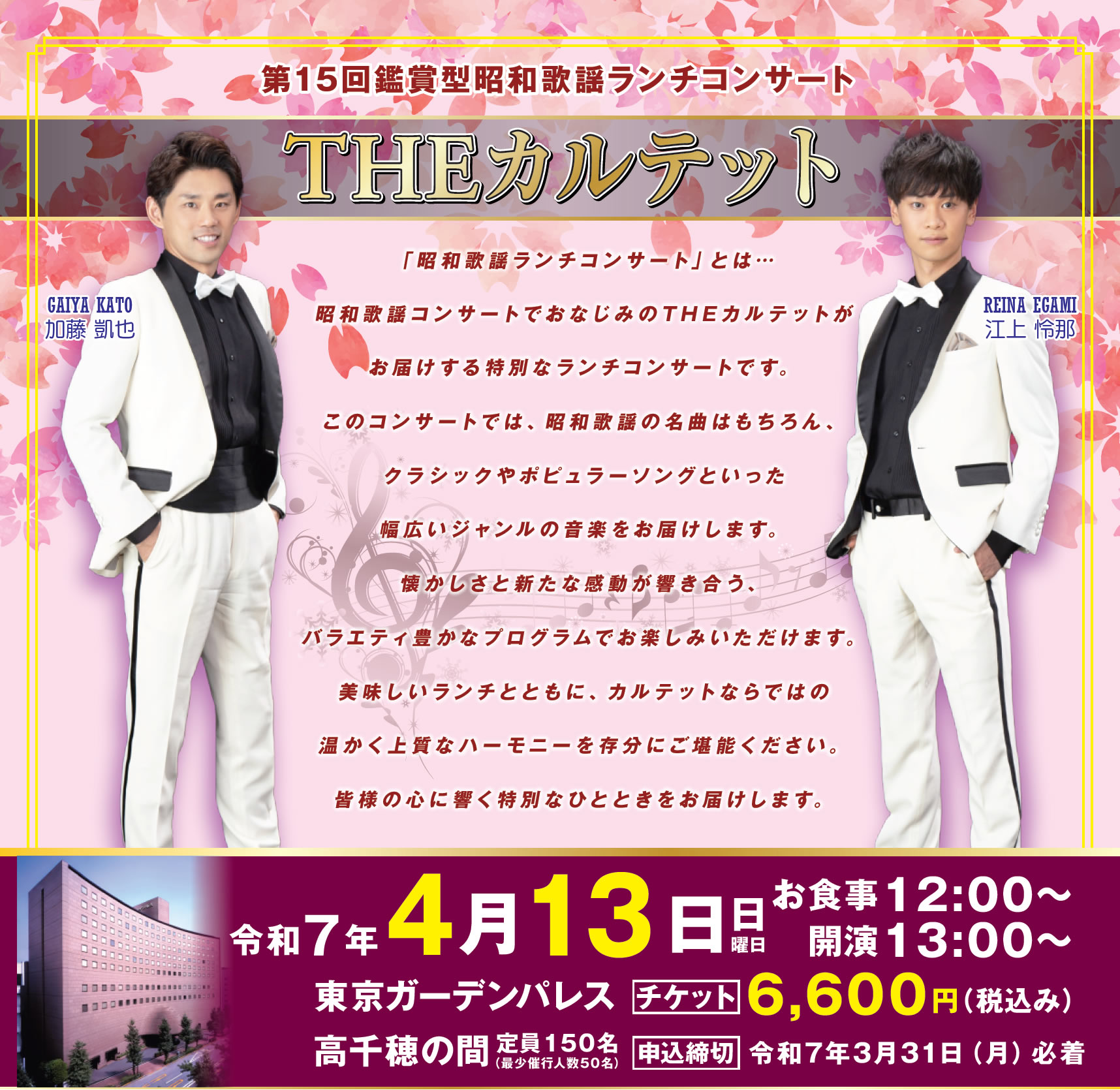 | 開催日 | 令和7年4月13日(日) | 会場 | 東京ガーデンパレス 2階高千穂の間 |