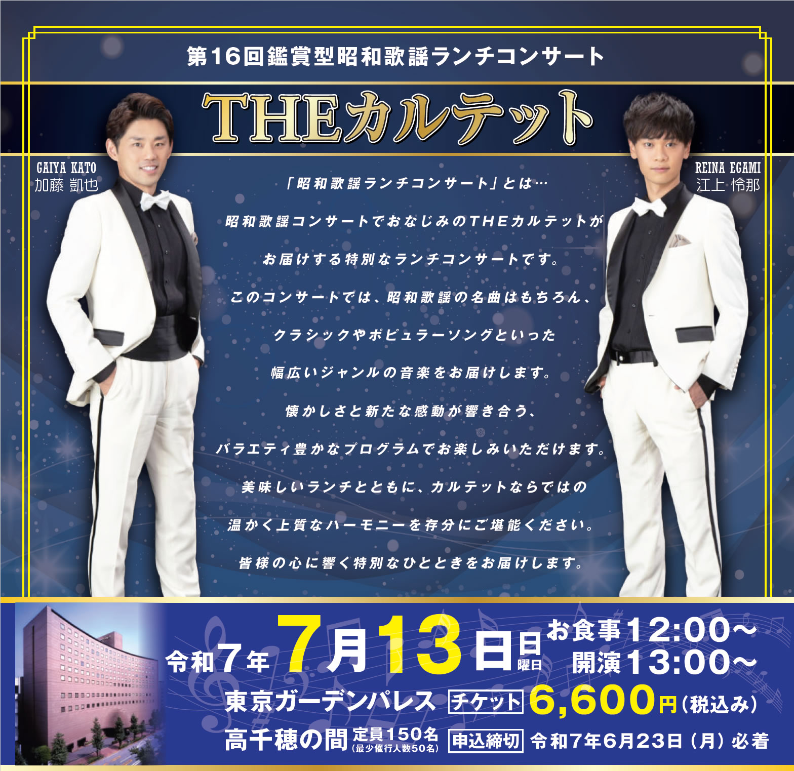 令和7年7月13日(日)開催第16回 鑑賞型昭和歌謡コンサート【THEカルテット】ですが