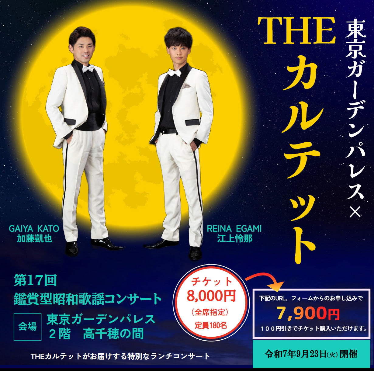 9月23日開催 第17回 鑑賞型昭和歌謡ランチコンサート【THEカルテット】ですが満席となりましたので、お申し込みを終了いたします。