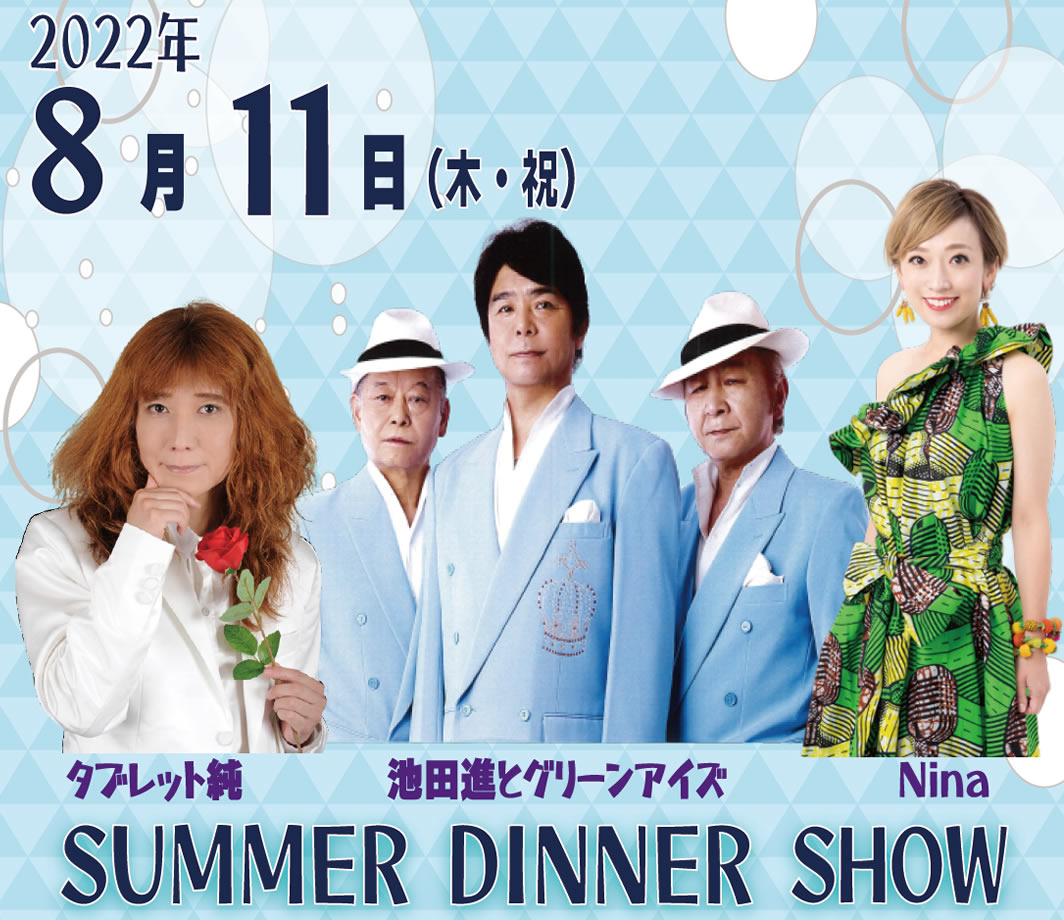 | 開催時間 | ■開場17:00~/お食事(洋食コース)17:30~ ■ショー19:00~ |