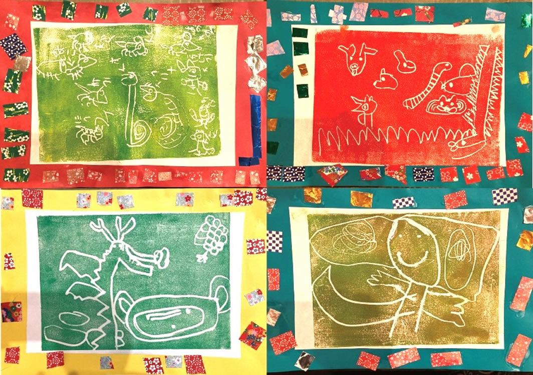 小日向台町幼稚園、園児の皆様が描かれた作品【十二支をテーマにした版画作品】を展示しております。是非、ご来館いただきお子様達の夢あふれる作品をご覧ください。