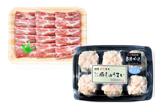 ロース820円、肩ロース820円、バラ850円、妻有ポーク焼売(6個)850円
