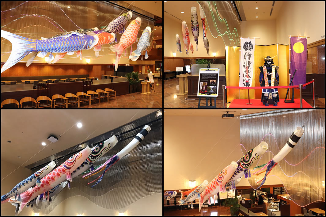 大きな鯉のぼりがホテル・ロビーを雄大に泳いでいます。また、御茶ノ水との関係もある「伊達政宗公の甲冑」も展示しております。ぜひご来館ください。