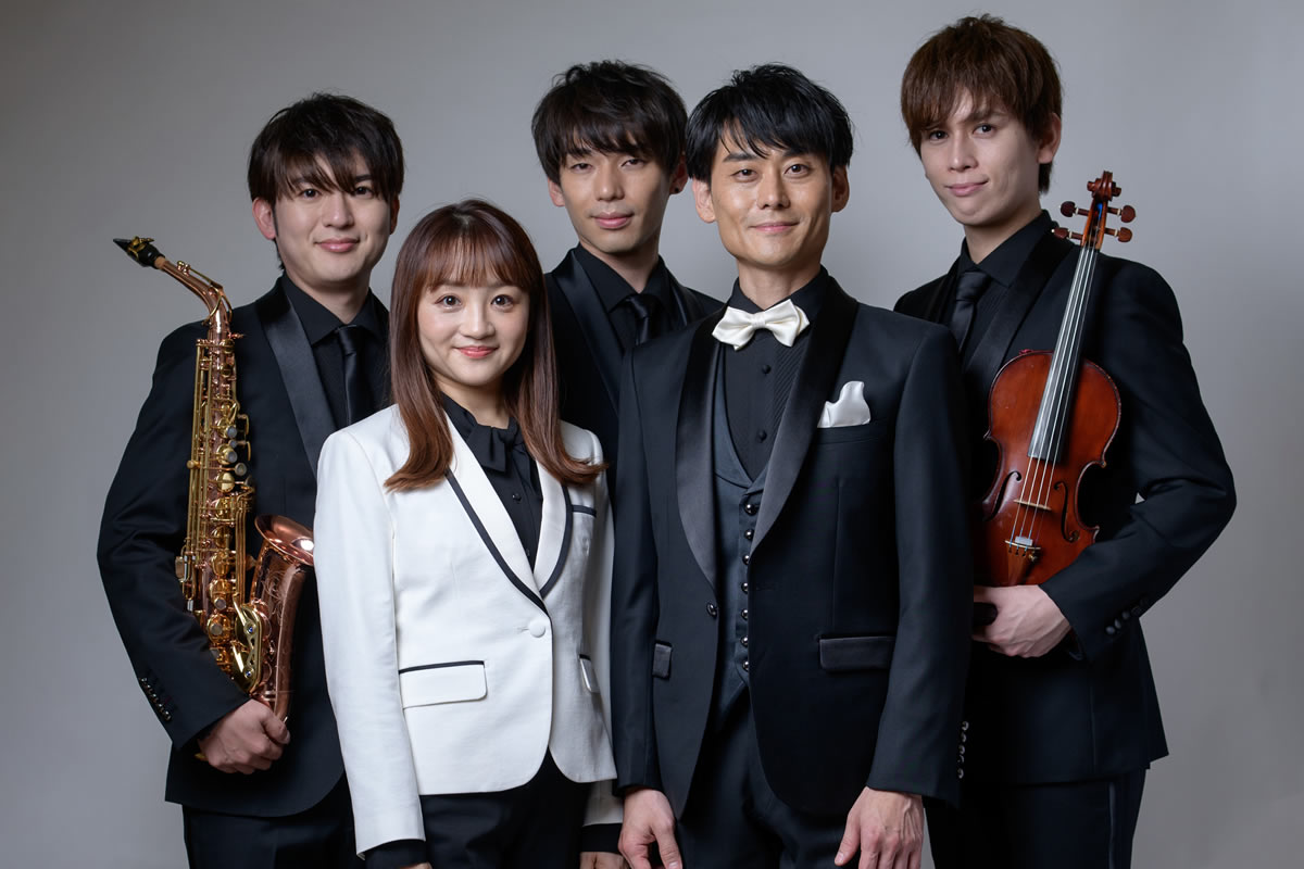 左からサックス:守利 航、池松日佳瑠、ピアノ:細貝 柊、宇都宮直高、ヴァイオリン:武田圭司