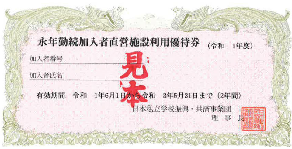 ●ご利用は、日本私立学校振興・共済事業団発行の永年勤続加入者直営施設利用優待券でお支払いのお客様が限定となります。予めご了承ください。
