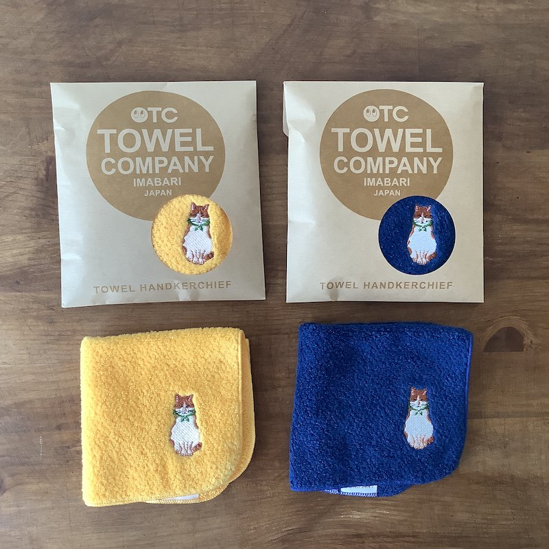 綿100%、タオルの名産地、今治で作ってもらったふわふわのハンカチは吸水性が良く、ふんわりもこもこな手触りはずっと触っていたくなるくらいやみつき度高し。わらび店長のワンポイント刺繍は主張しすぎず、コッソリ猫好きアピールにもピッタリ!男女ともに持ちやすいデザインです。