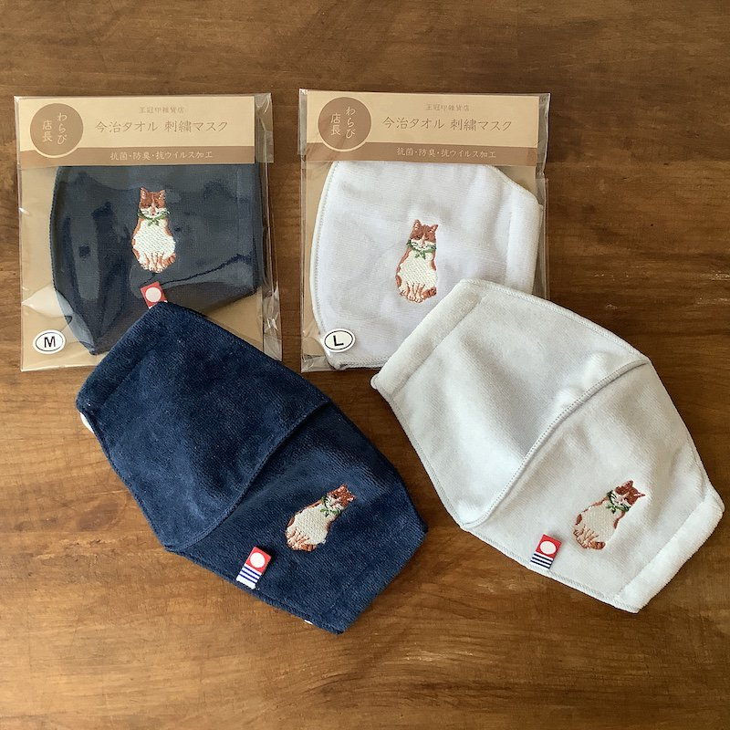 【王冠印雑貨店オリジナル わらび店長刺繍の今治タオルマスク】
