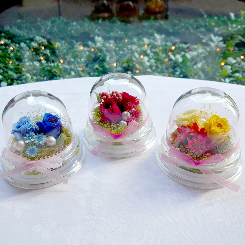 ※プリザーブドフラワードームとハーバリウムボールペンの色味はおまかせ商品となります。