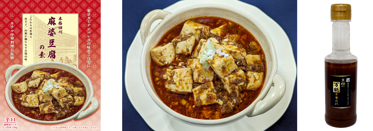 こだわりの炸醤(ザージャン)と唐辛子、山椒が織りなす麻婆豆腐の素。当館のレストランで大人気!本格四川風麻婆豆腐をご家庭でお楽しみください♪