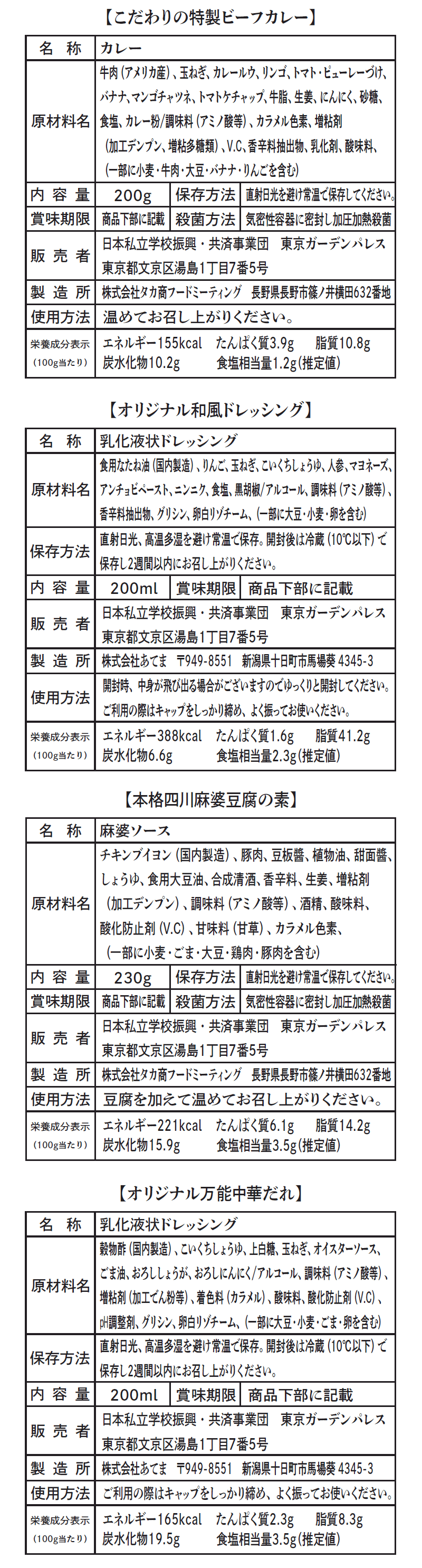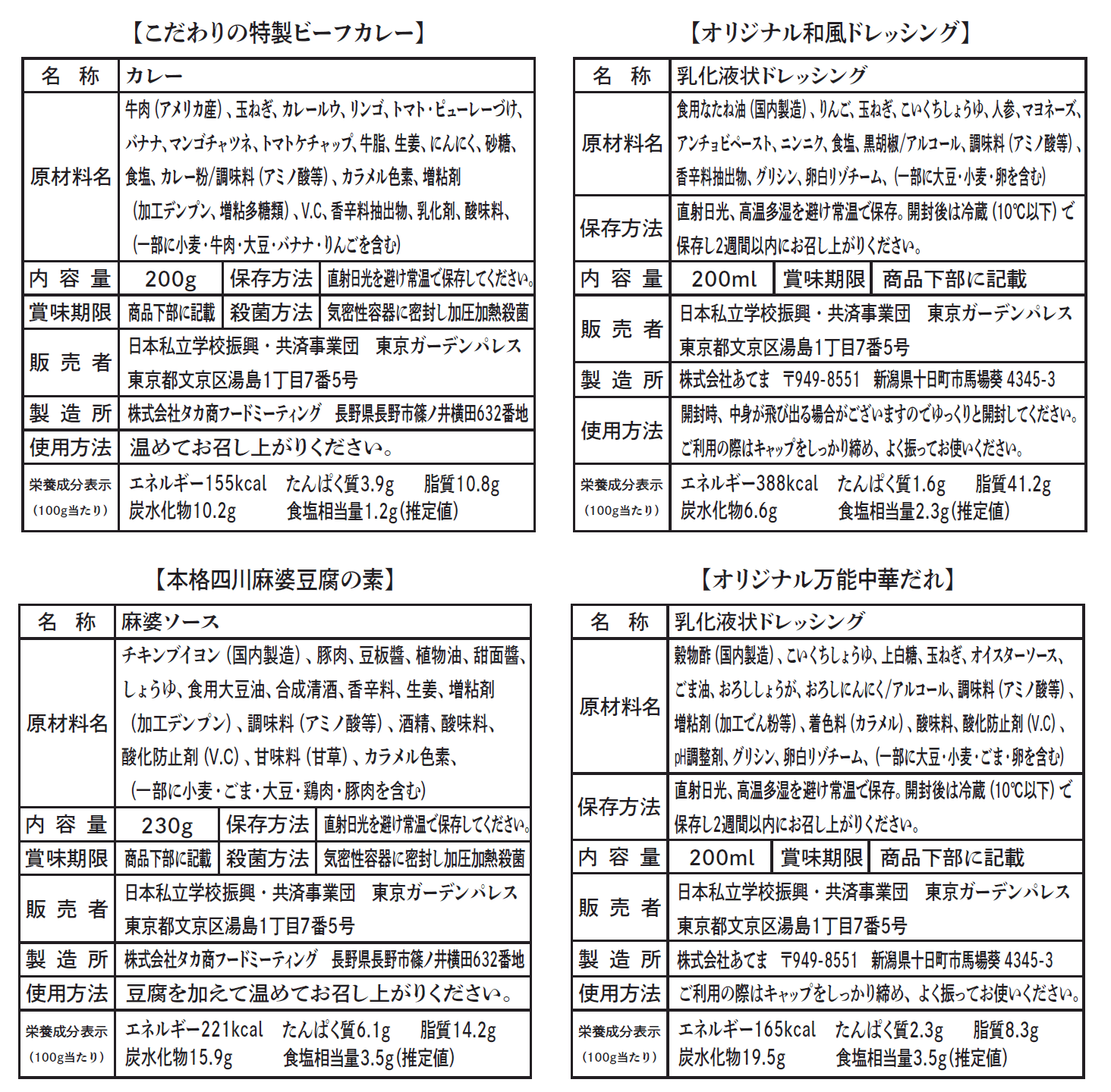 ~東京ガーデンパレス自慢の味~プライベート商品の6点セット