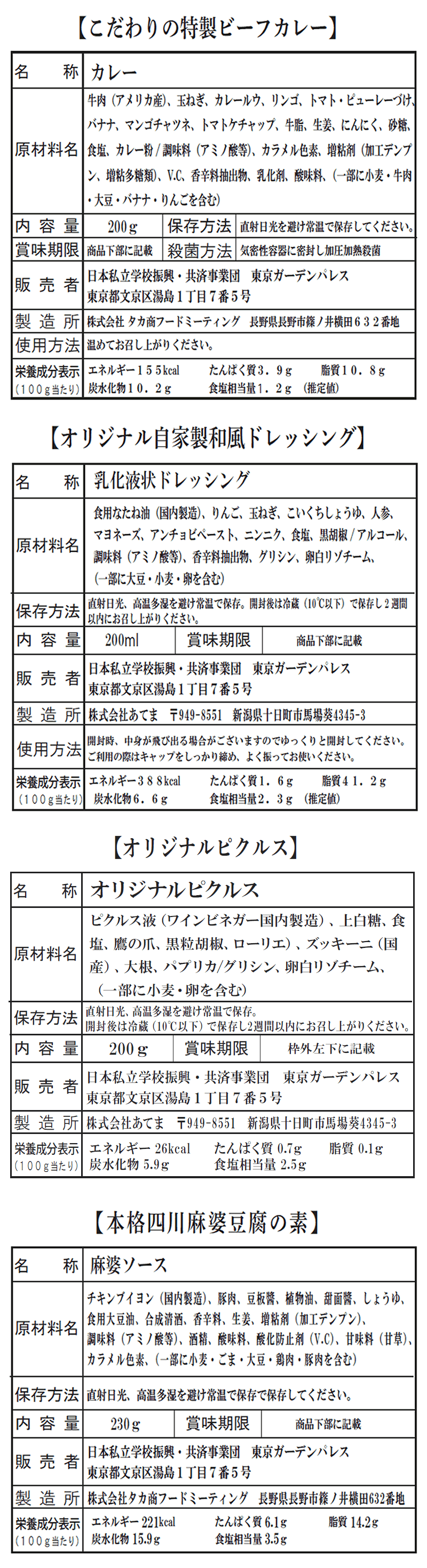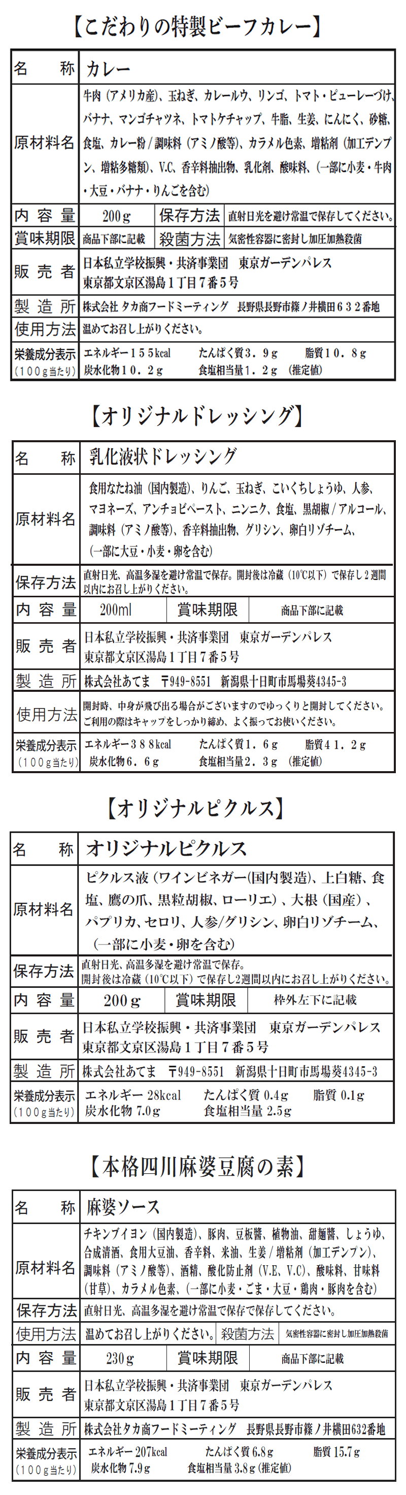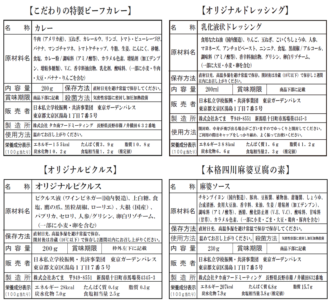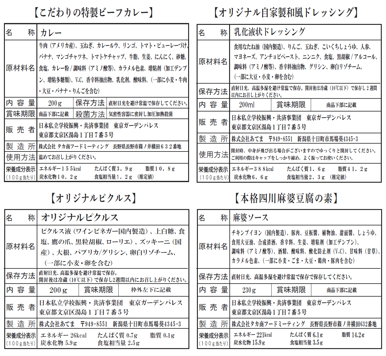東京ガーデンパレスの味を、ご家庭でもお楽しみいただける「自慢の味~厳選商品6点セット」をご用意いたしました。
